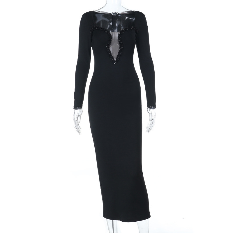 Sparkling tight fitting hip hugging fish tail elegant evening dress long skirt