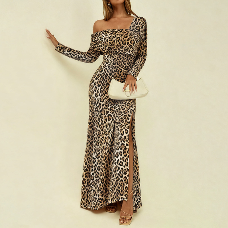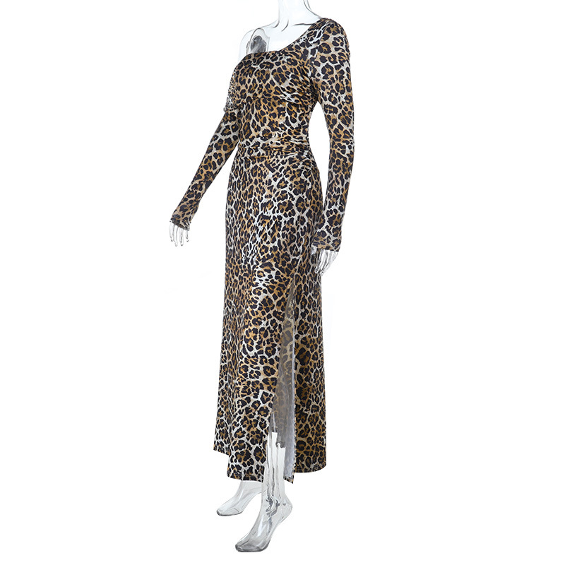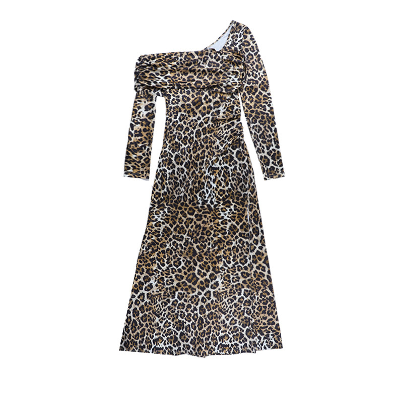 Square neck sexy leopard print slim fit dress