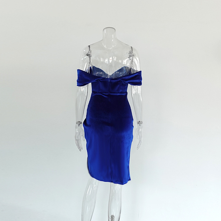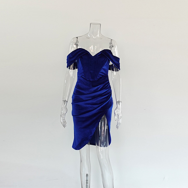 Velvet Boned Slit Evening Dress for Women