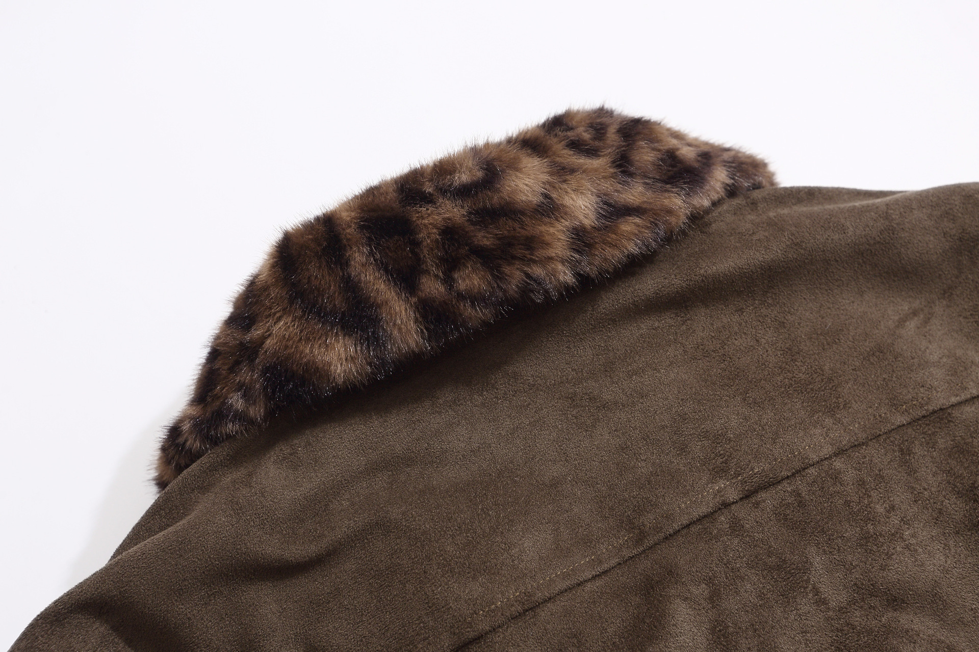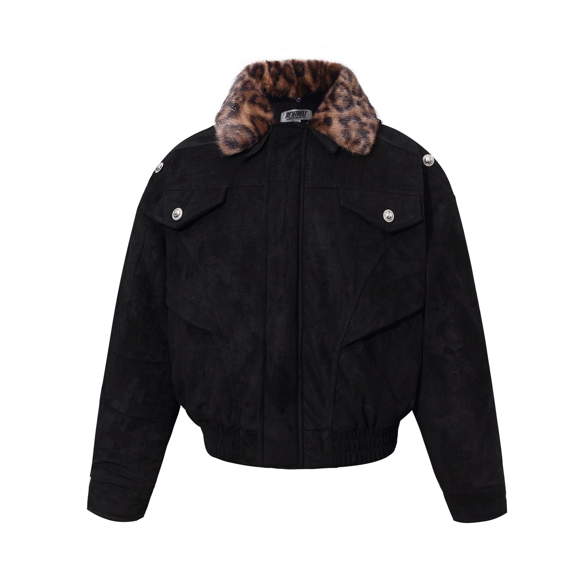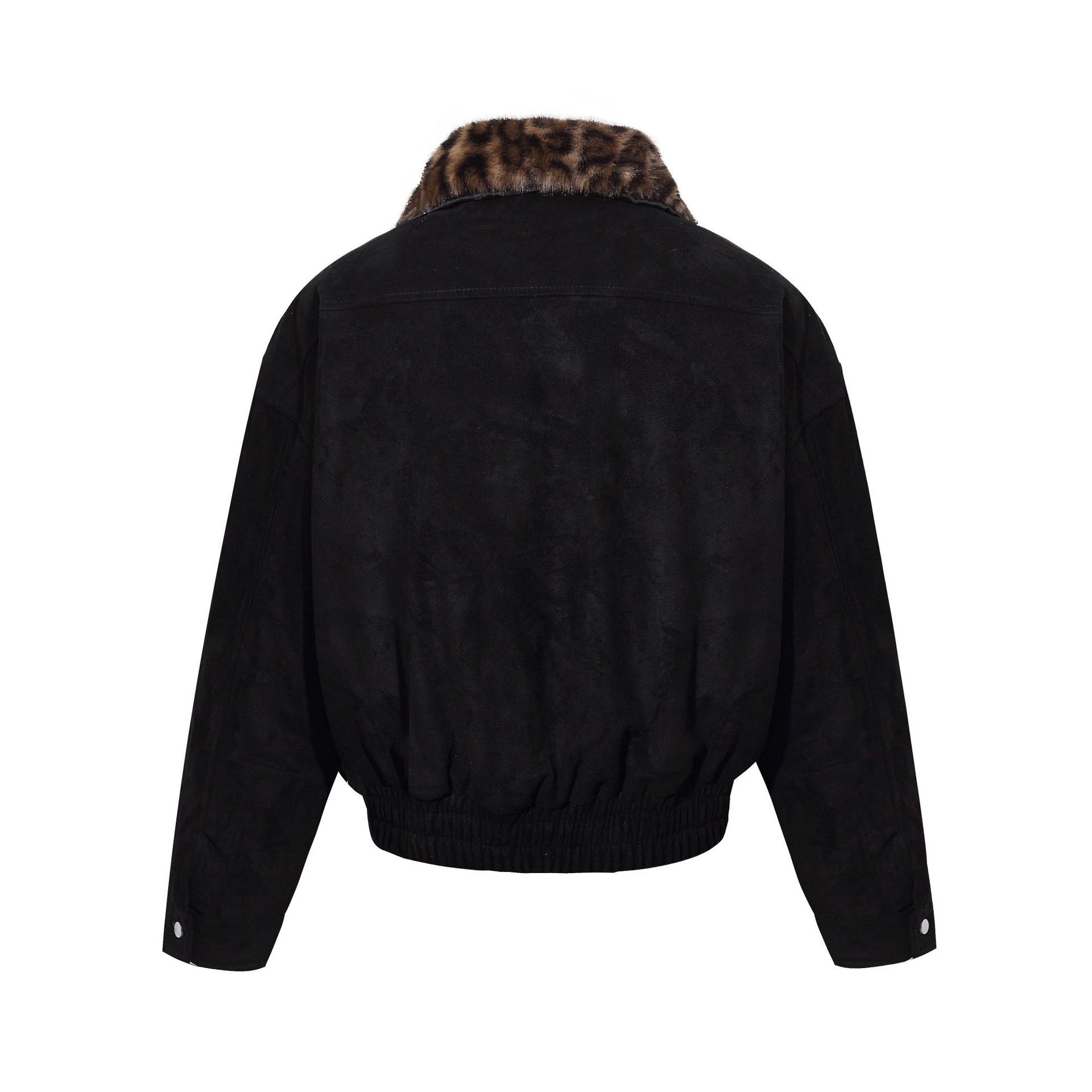 Warm leopard print fur collar cotton jacket