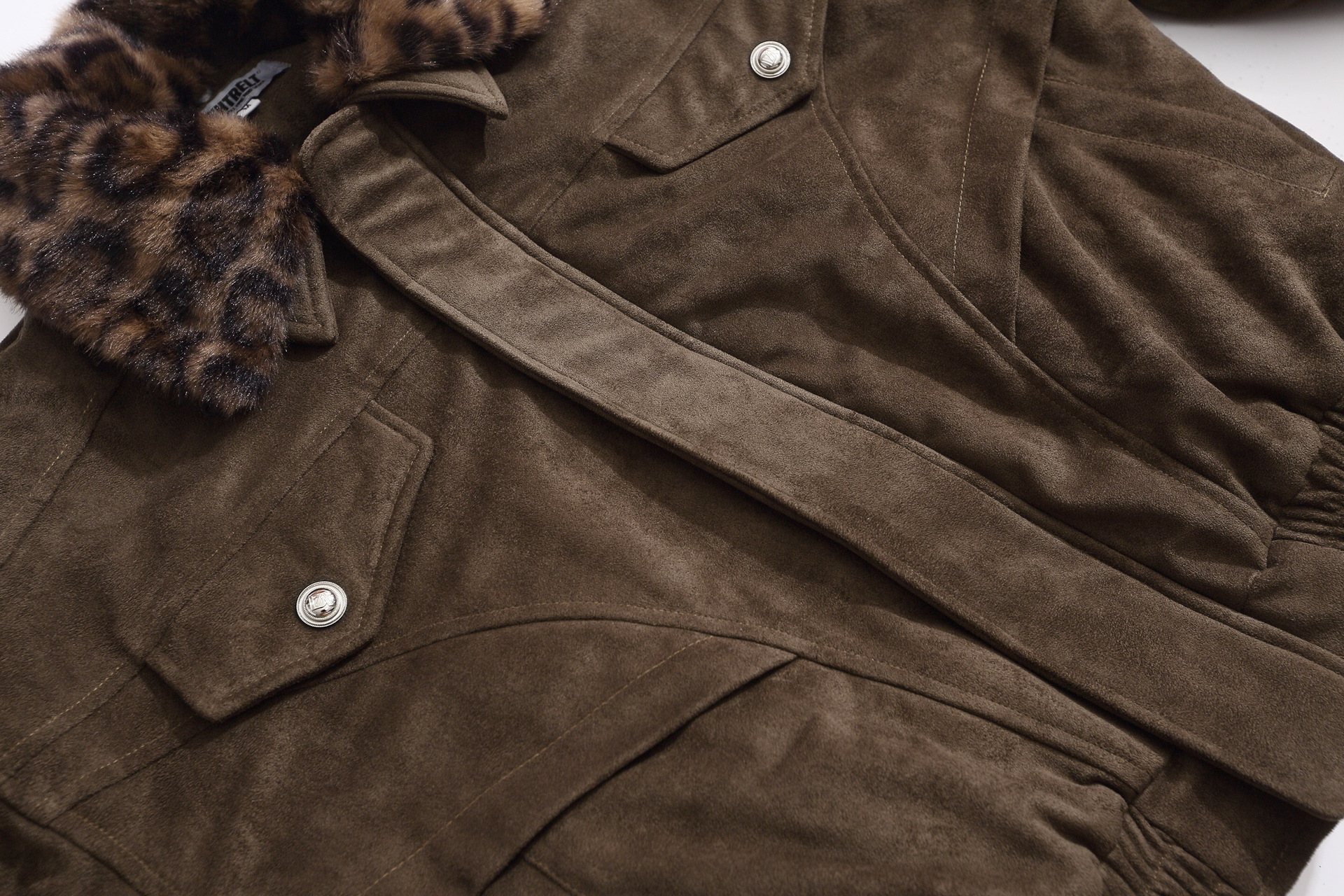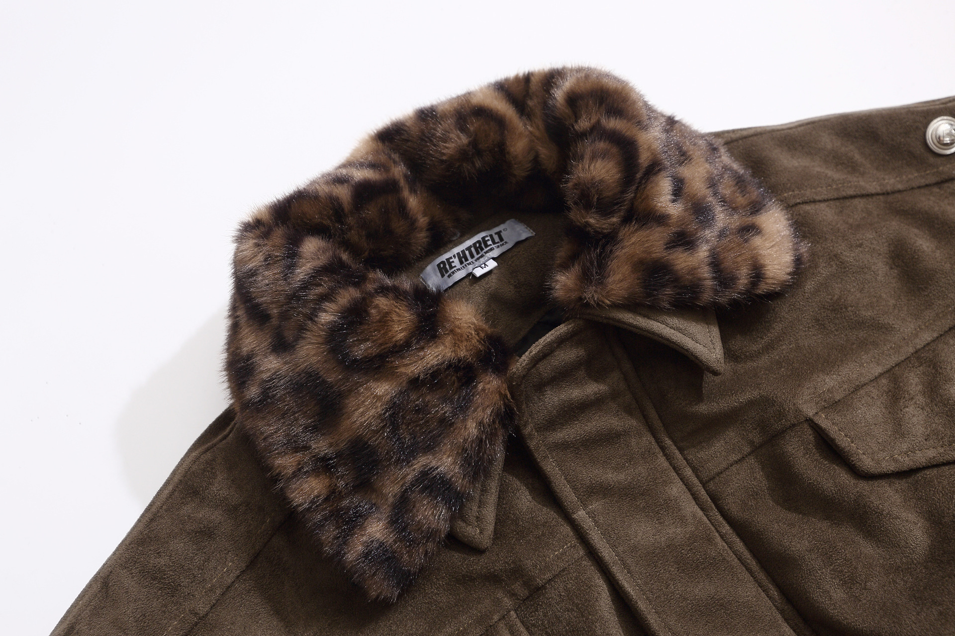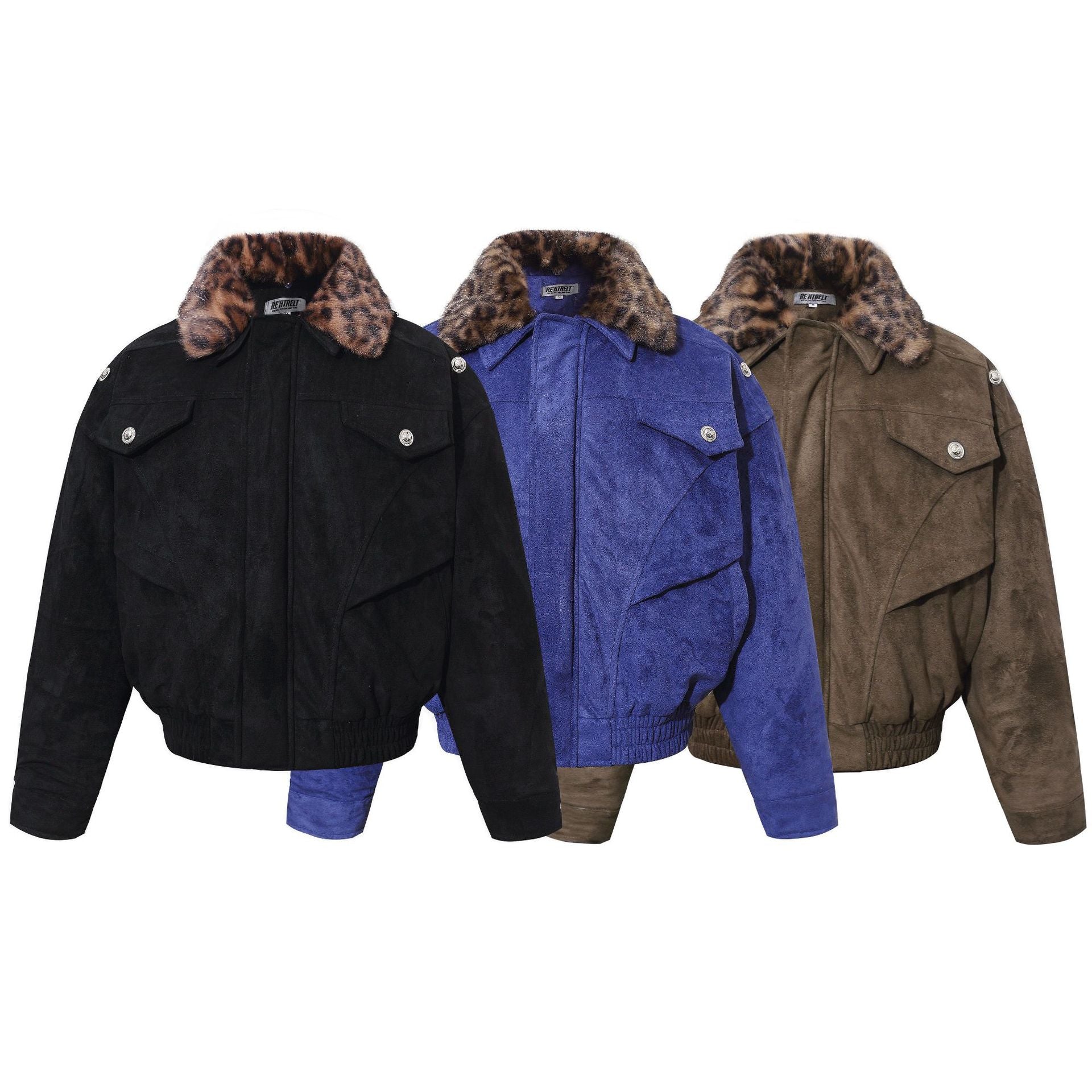 Warm leopard print fur collar cotton jacket